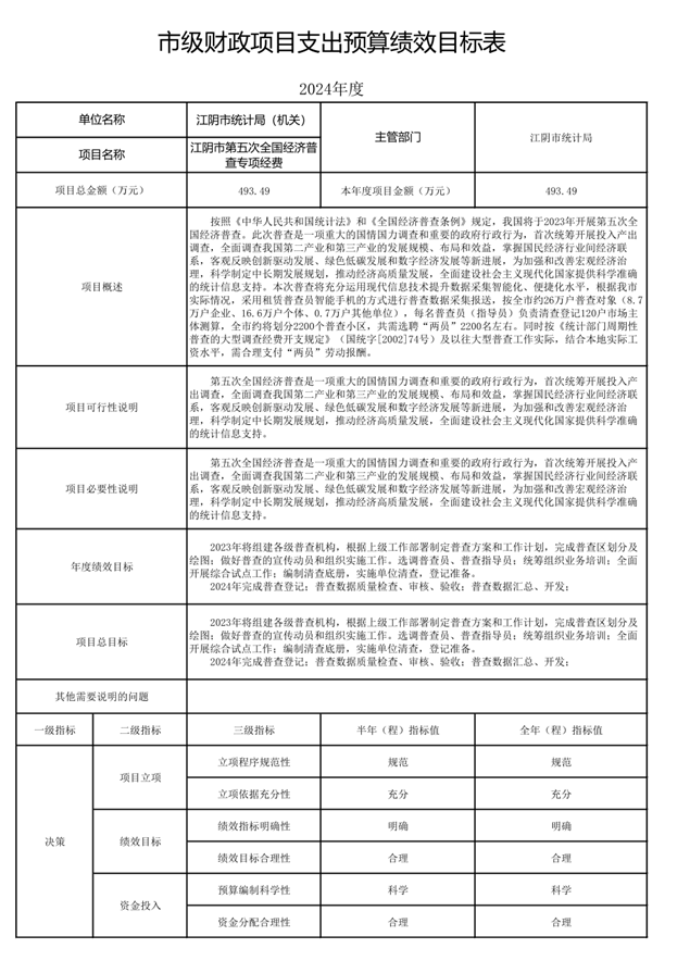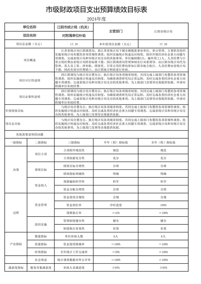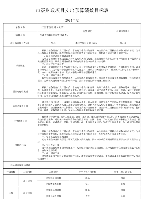 江阴市统计局2024年度市级财政项目支出预算绩效目标表