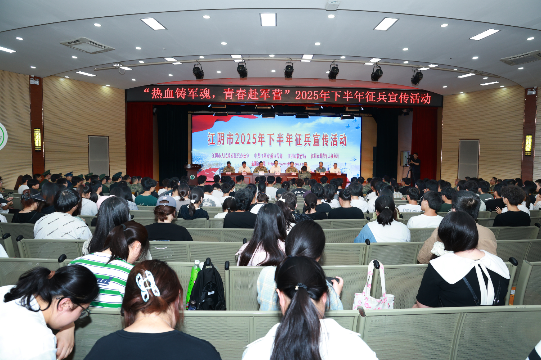 近日,“热血铸军魂,青春赴军营”江阴市2025年下半年征兵宣传活动走进江阴职业技术学院,进一步弘扬爱国主义精神,鼓励广大学子报名参军,积极投身国防和军队建设。市领导陈鹏、张弦参加活动。
