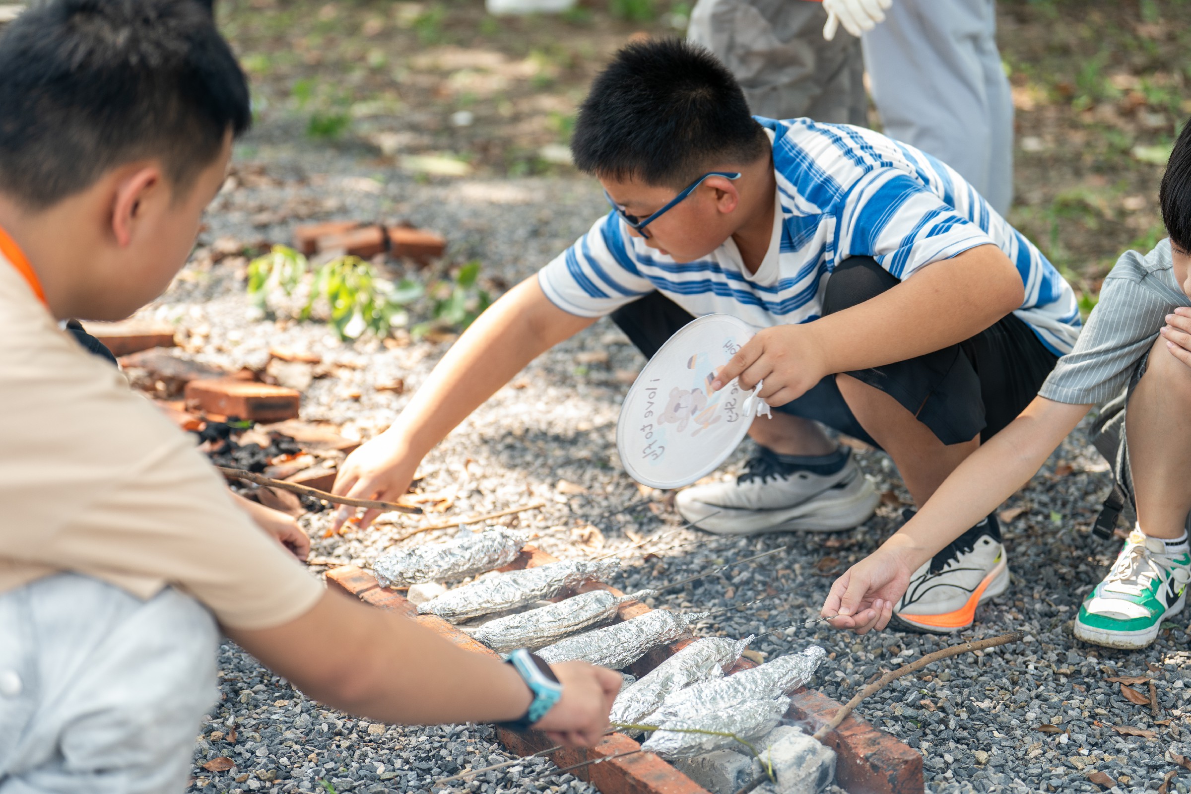 (四)田间厨房,实践真知。小营员们深入田间地头,协作采摘玉米,学习野外取火、安全烹饪(烤制食物)及灭火技能,品尝劳动果实;在带队老师指导下亲手腌制、包裹、烤制传统美食“叫花鸡”,体验食品安全从农田到餐桌的全链条过程。