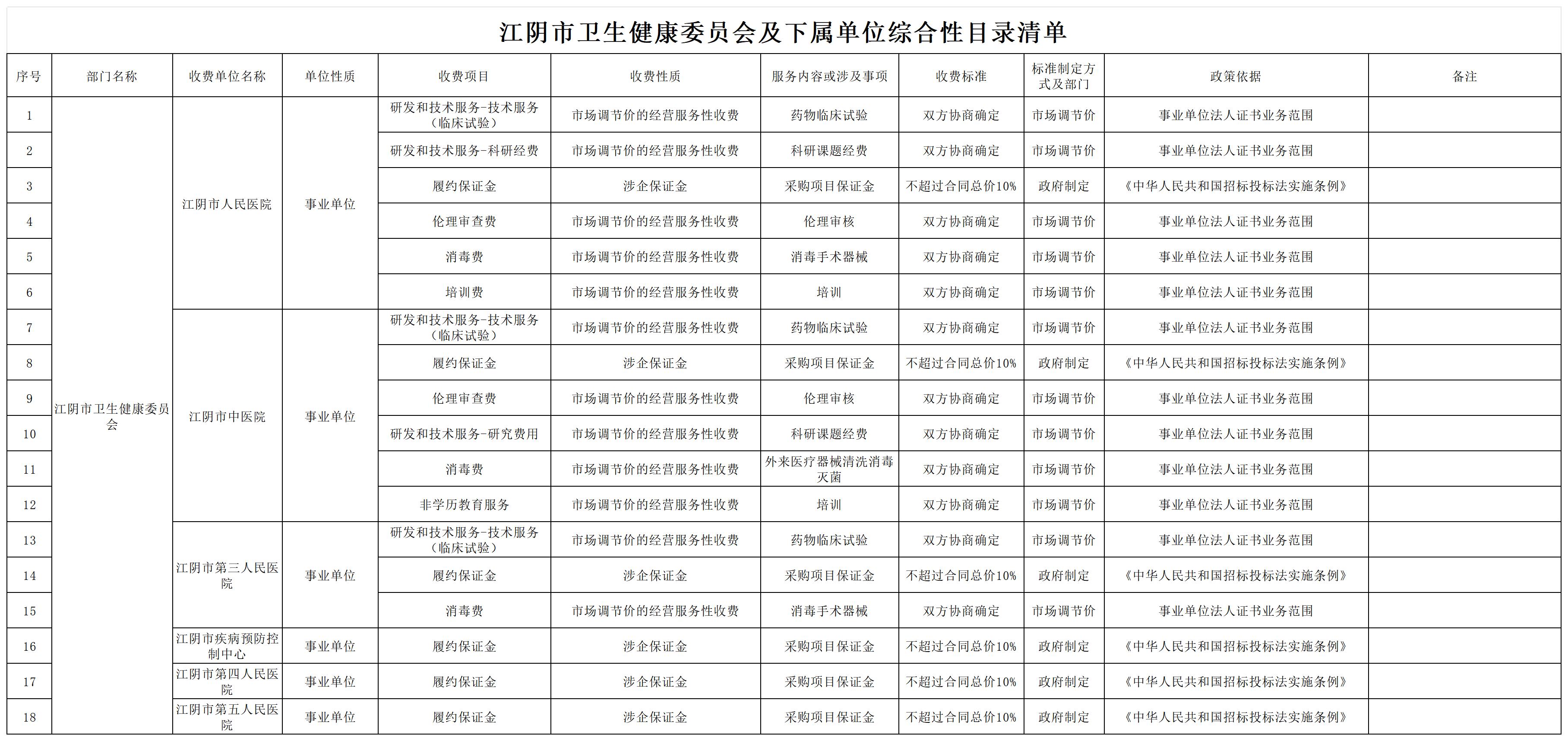 江阴市卫生健康委员会及下属单位综合性目录清单