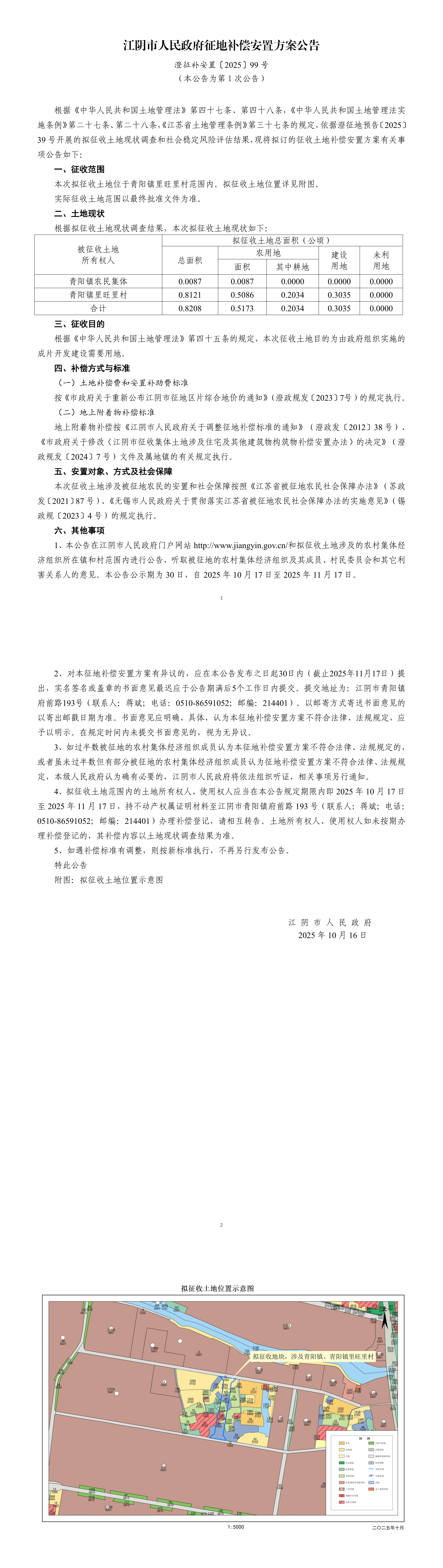 江阴市人民政府征地补偿安置方案公告 澄征补安置〔2025〕99号