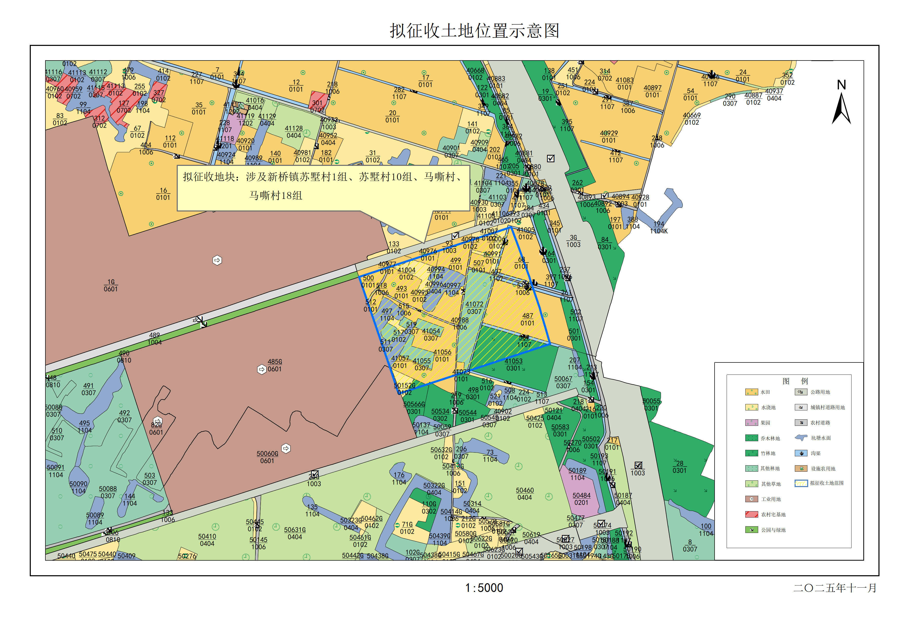 本次拟征收土地位于新桥镇苏墅村、苏墅村第十村民小组、苏墅村第一村民小组、马嘶村、马嘶村第十八村民小组范围内。拟征收土地位置详见附图。
