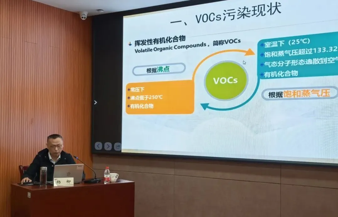 培训中,杨柳教授围绕VOCs(挥发性有机化合物)的科学定义及其在工业生产中的典型来源,进行了系统梳理。结合实际案例,杨教授深入浅出地讲解了当前主流的VOCs治理技术,重点剖析了VOCs治理技术的选择原则与工程技术规范要求,帮助参训人员建立起科学决策的技术框架,提升在项目审批、日常监管和企业服务中的专业判断力。