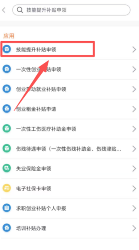 第二步:在“关键字搜索”栏输入“技能提升补贴申领”。