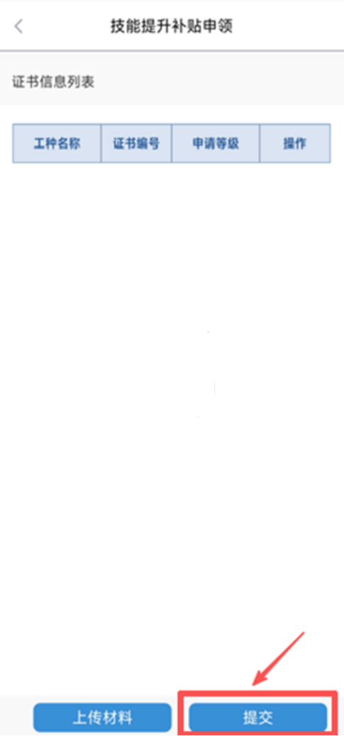 第三步:如果符合条件,系统会自动识别个人身份信息及证书编号、补贴标准,选中本次申领补贴的关联证书,点击“提交”即可。