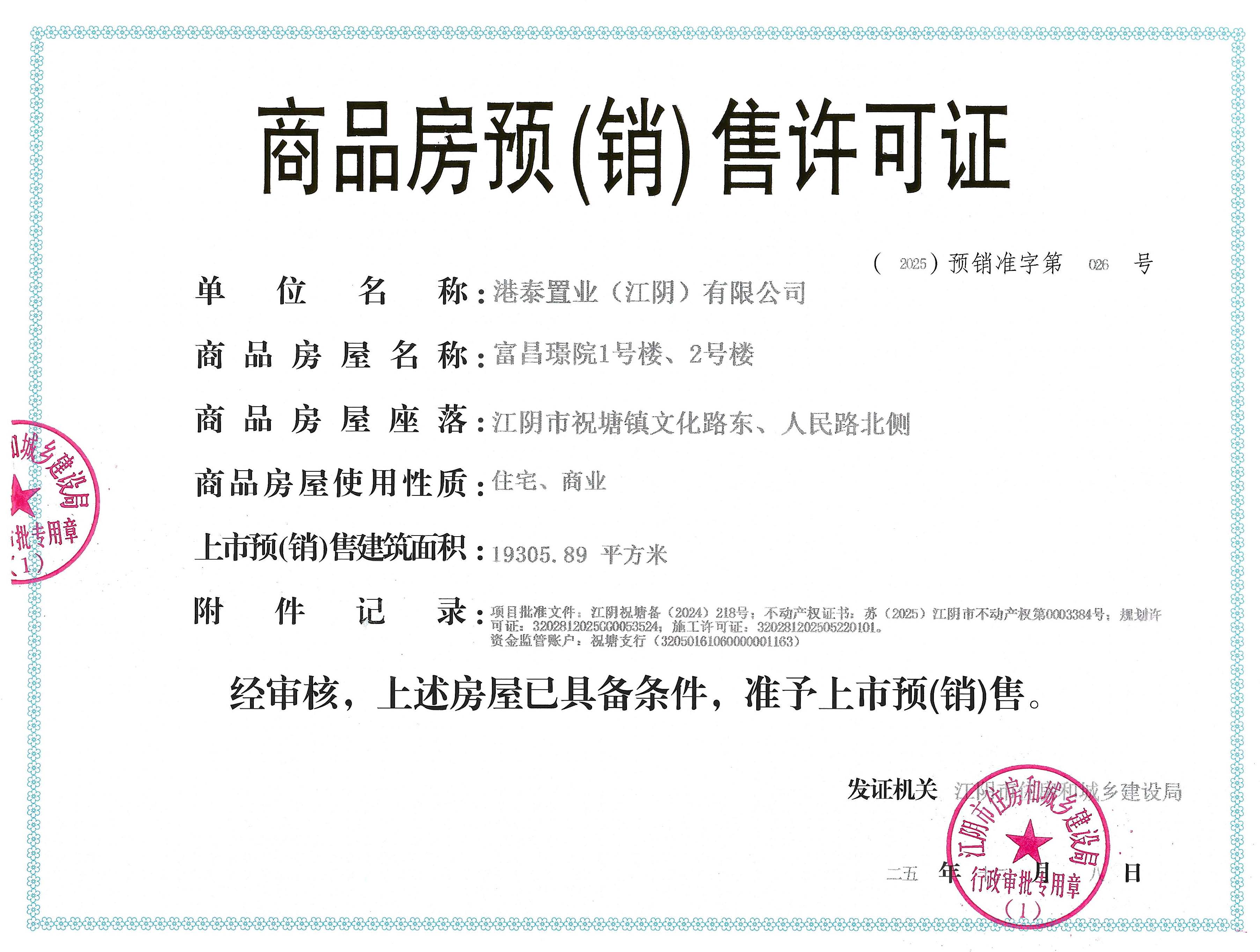 商品房预(销)售许可证(富昌璟院1号楼、2号楼)