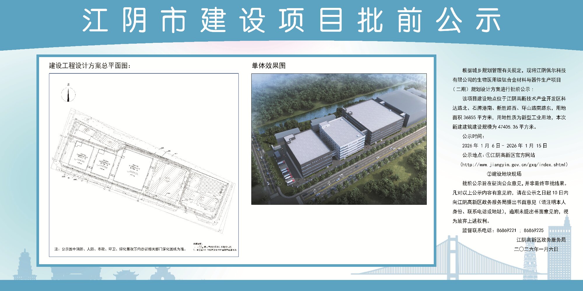 江阴佩尔科技有限公司生物医用镍钛合金材料与器件生产项目(二期)规划设计方案进行批前公示