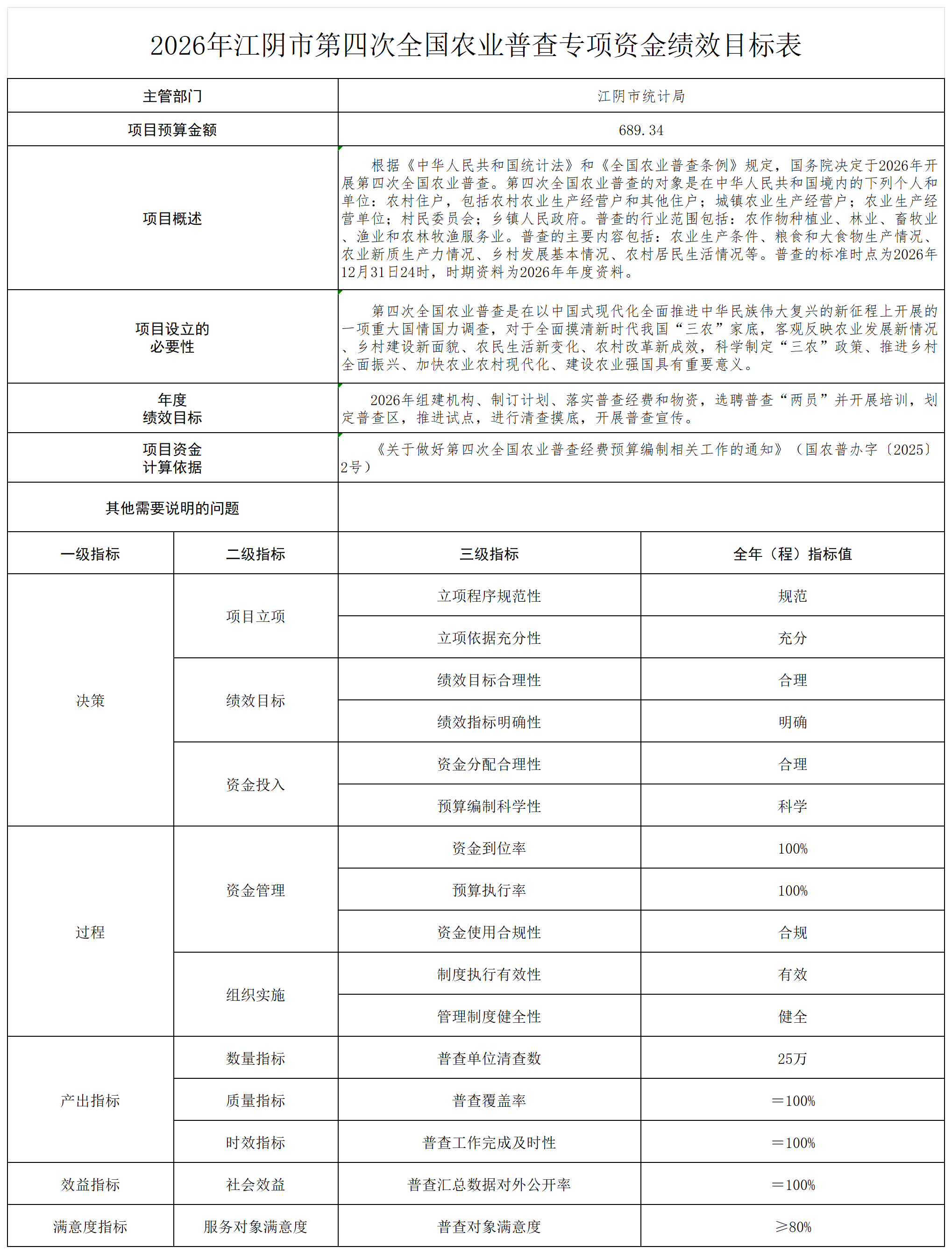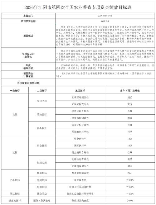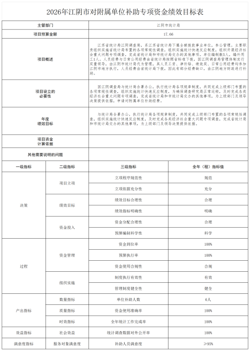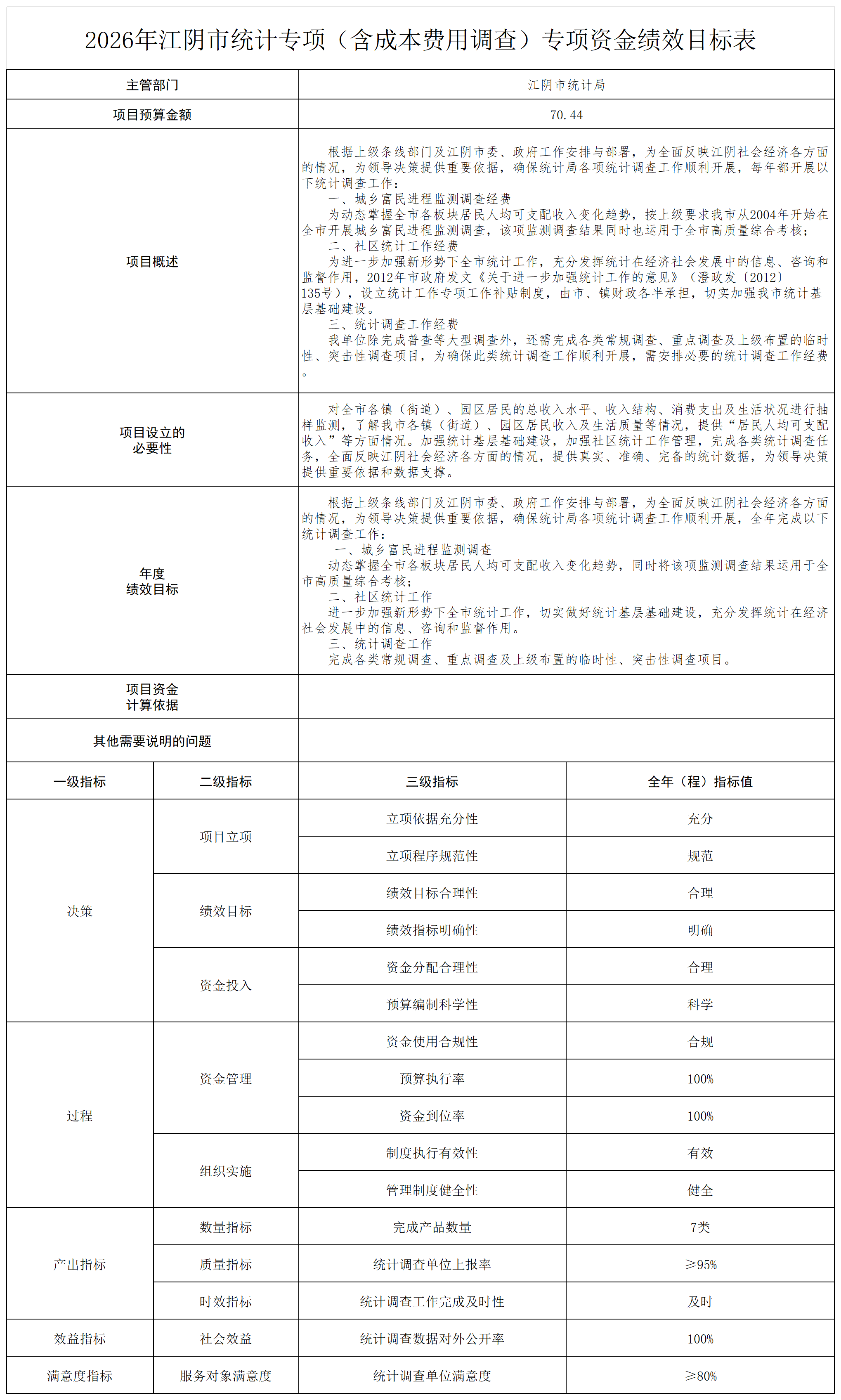 江阴市统计局2026年度项目预算绩效信息公开 |