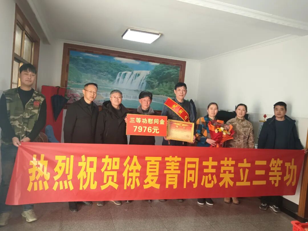 在新春佳节来临之际,为大力弘扬拥军优属的光荣传统,切实增强军人军属的获得感、幸福感和荣誉感,市退役军人事务局联合市人武部,深入月城镇、祝塘镇、澄江街道、城东街道和南闸街道,集中开展为立功受奖军人黄锋、徐夏菁、朱瑾、谢磊、高卫东、张大力、谭雨涛等7户家庭送喜报活动,将党和政府的关怀、全社会的尊崇与温暖,送到军人军属的心坎上。