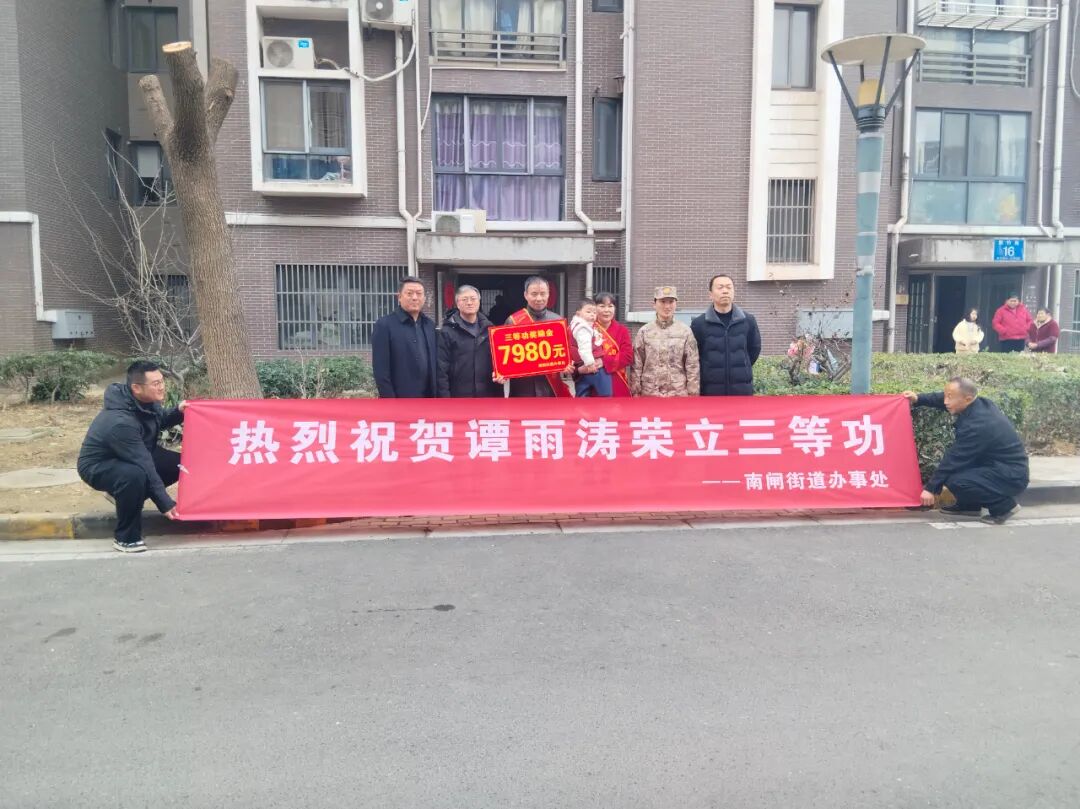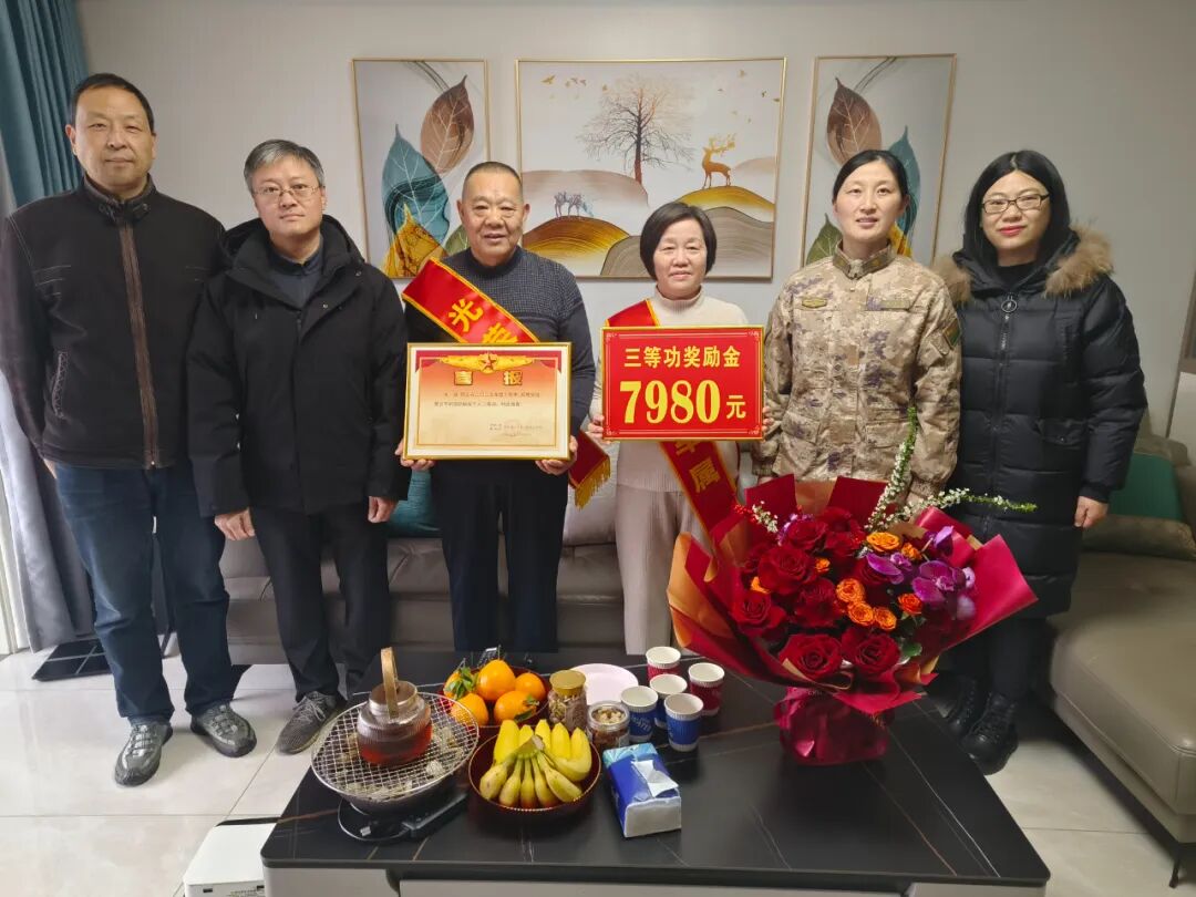 在谭雨涛家中,慰问组一行为家属送上喜报、慰问金及节日问候。慰问组表示,一人立功、全家光荣,彰显了地方拥军优属的深厚情怀,感谢他们为国家培养优秀人才。
