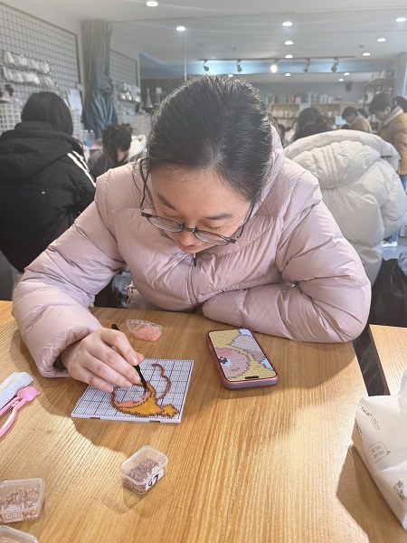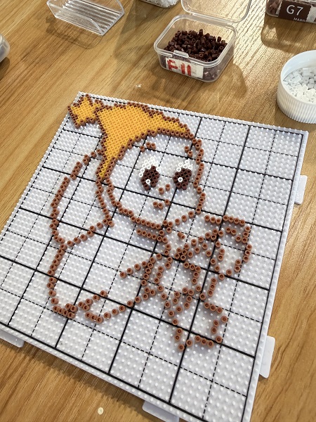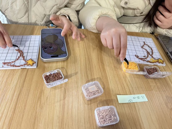 经过一个多小时的精心制作,一件件色彩斑斓、独具匠心的拼豆作品陆续诞生。大家看着自己亲手完成的作品,脸上洋溢着喜悦与成就感。