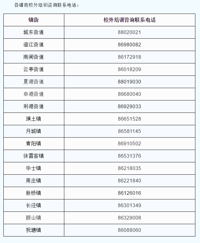 学科类校外培训:江阴市教育局 86862219、86862217