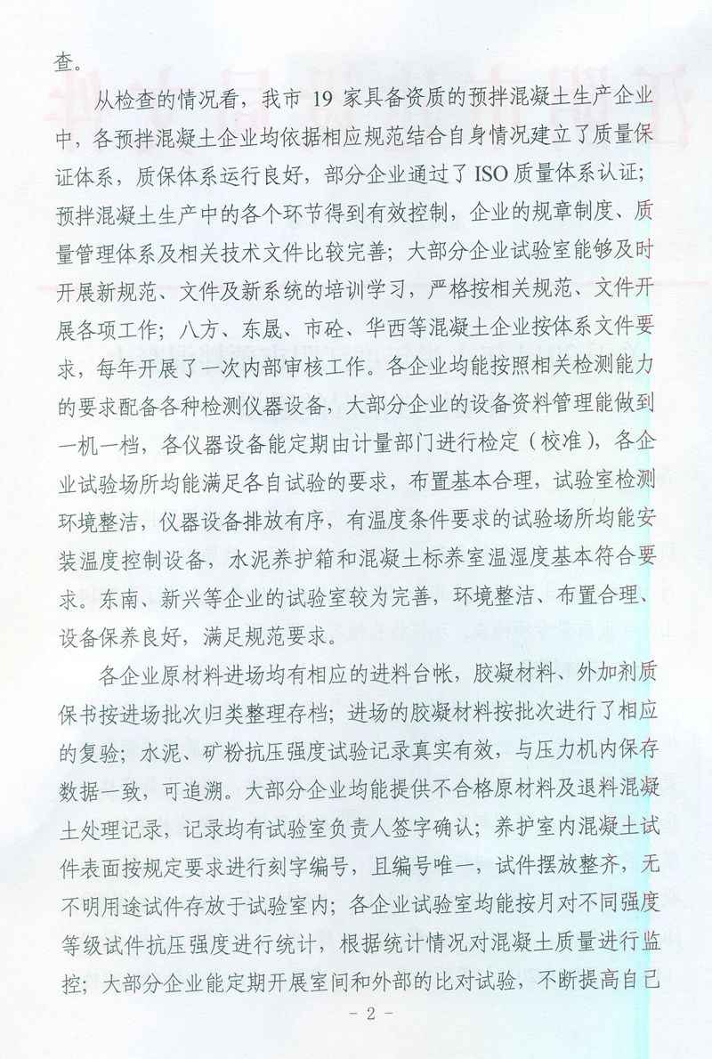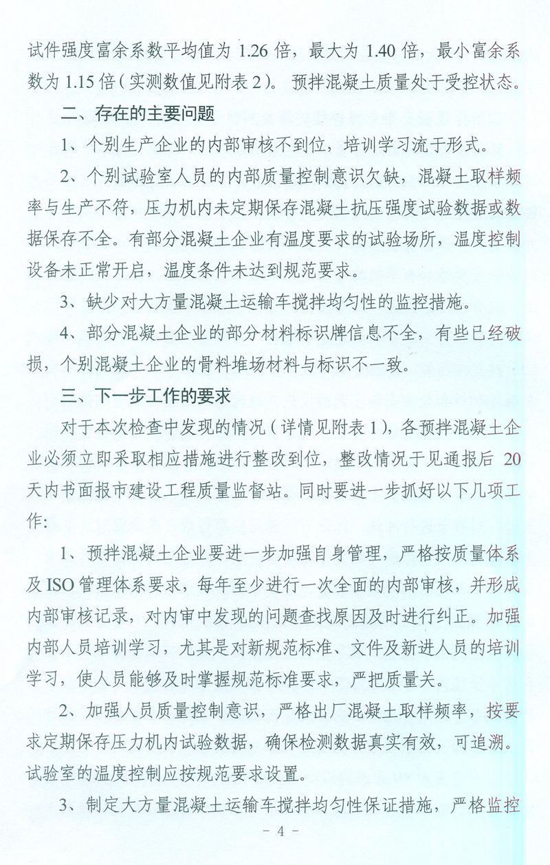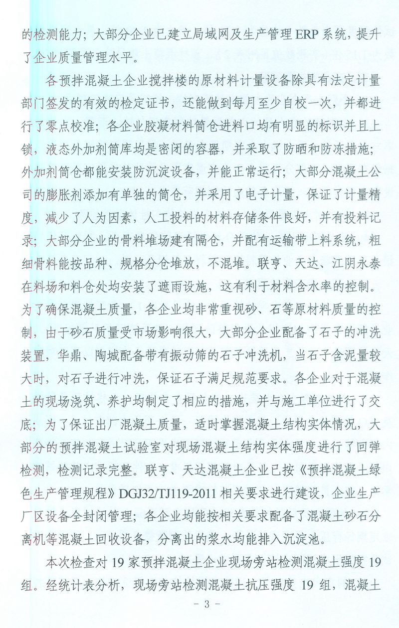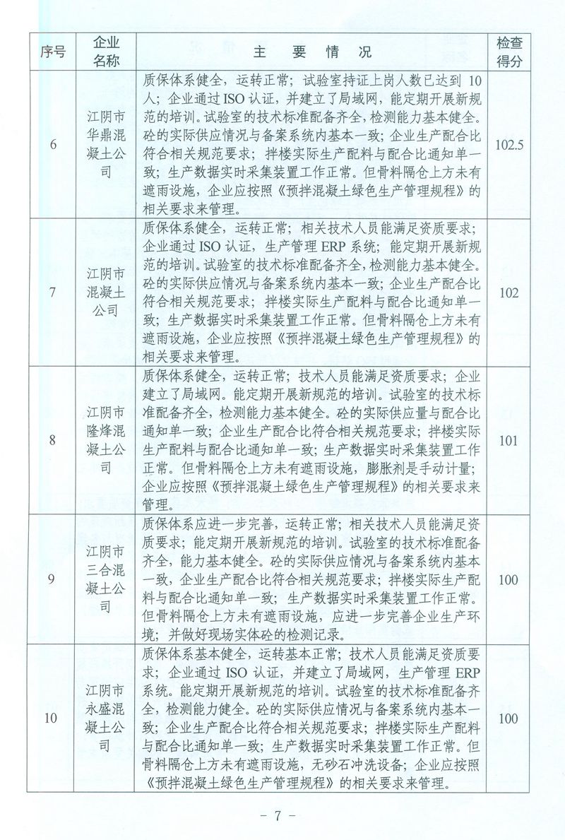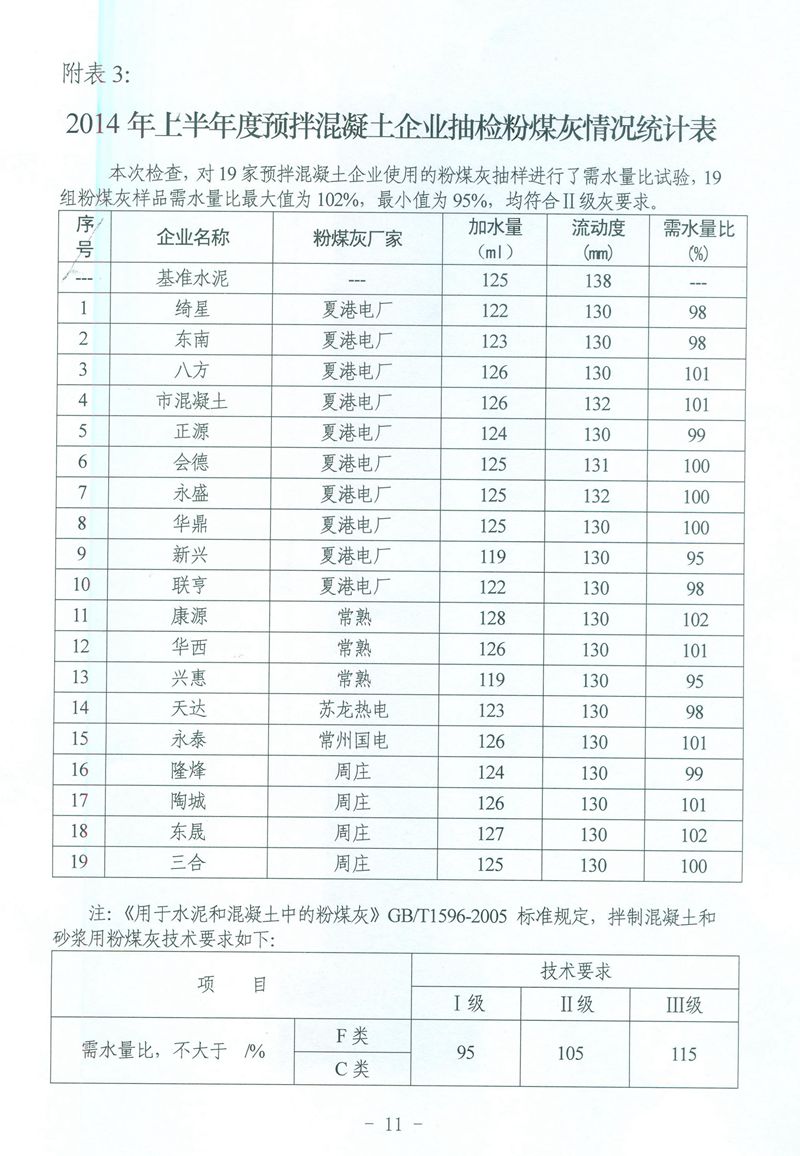 关于2014年上半年度江阴市预拌混凝土质量检查情况的通报