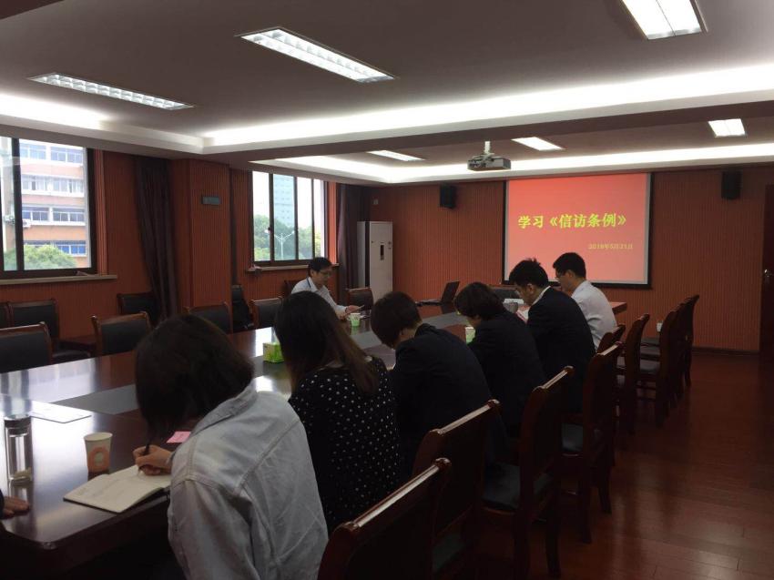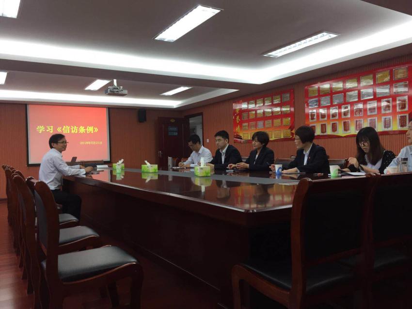 2018年5月21日,市信访局党支部第一党小组组织《信访条例》学习研讨。