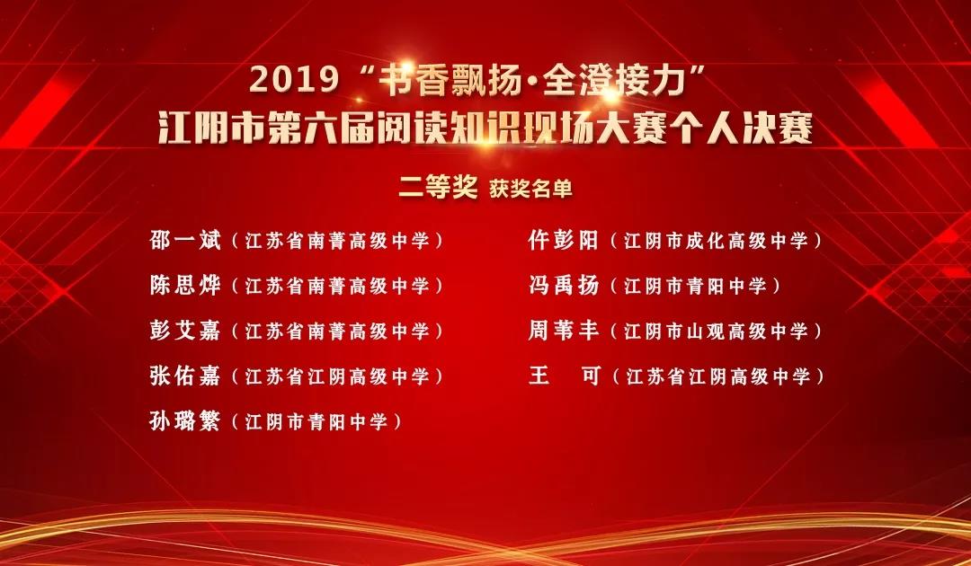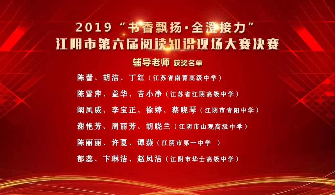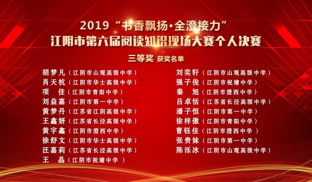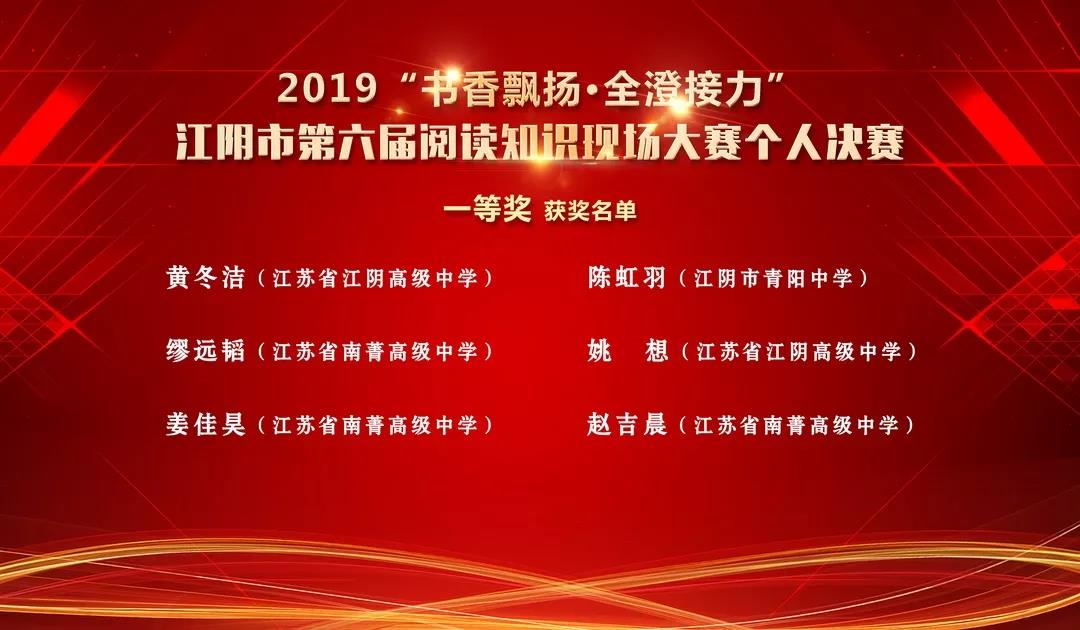 | 内容概述 | 书香飘逸校园 经典浸润生命 江阴市第六届阅读知识现场大赛圆满落幕 | ||||