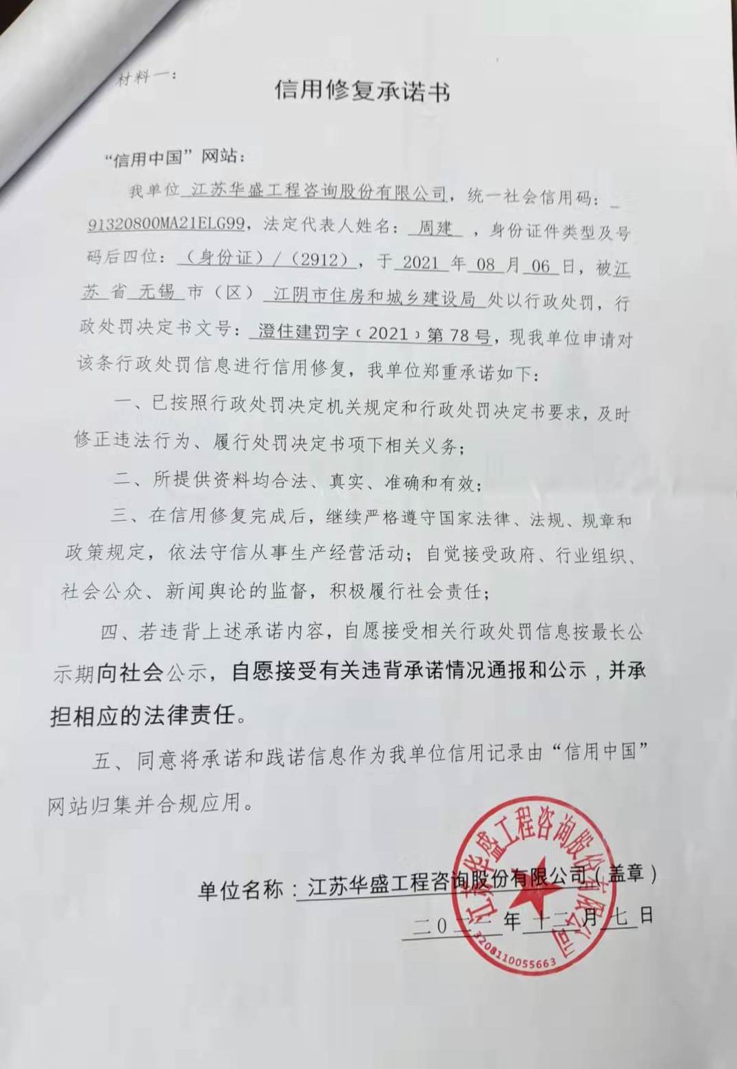 江苏华盛工程咨询股份有限公司_澄住建罚字﹝2021﹞第78号