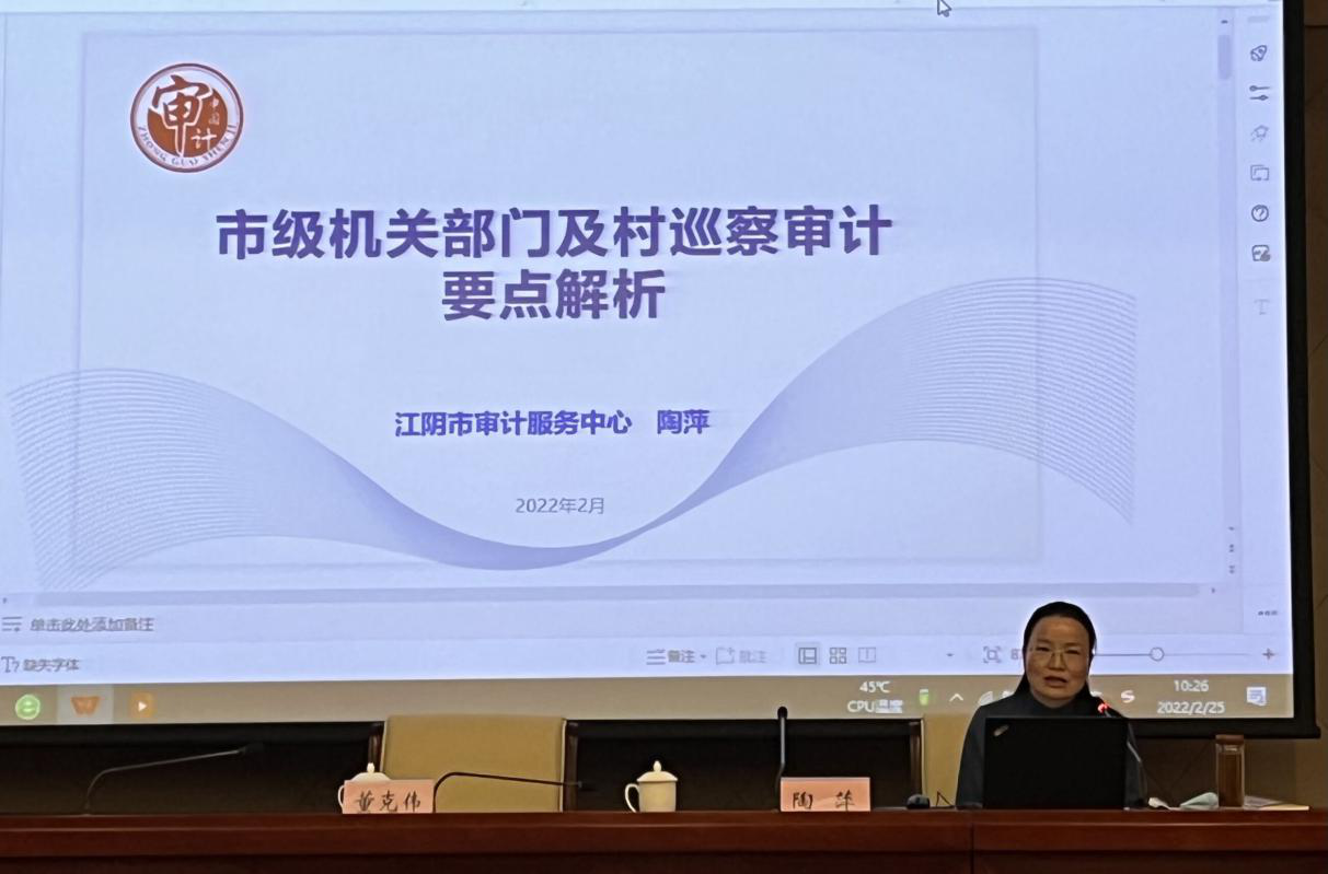 为进一步提高市委巡察干部履职能力,打好新一届巡察工作基础,提升巡察监督实效,形成“巡审”监督合力,2022年2月25日,江阴市审计服务中心主任陶萍同志受邀为市委五个巡察组和市审计局部分审计人员授课。