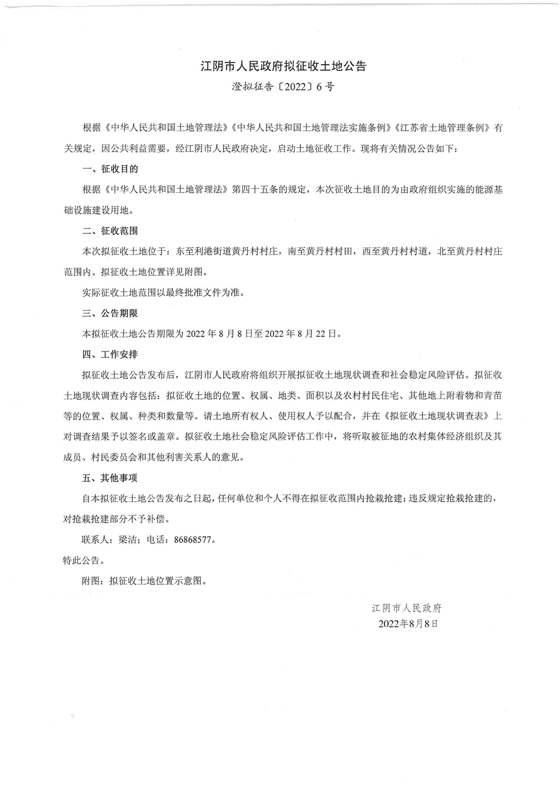 江阴市人民政府拟征收土地公告(澄拟征告〔2022〕6号)
