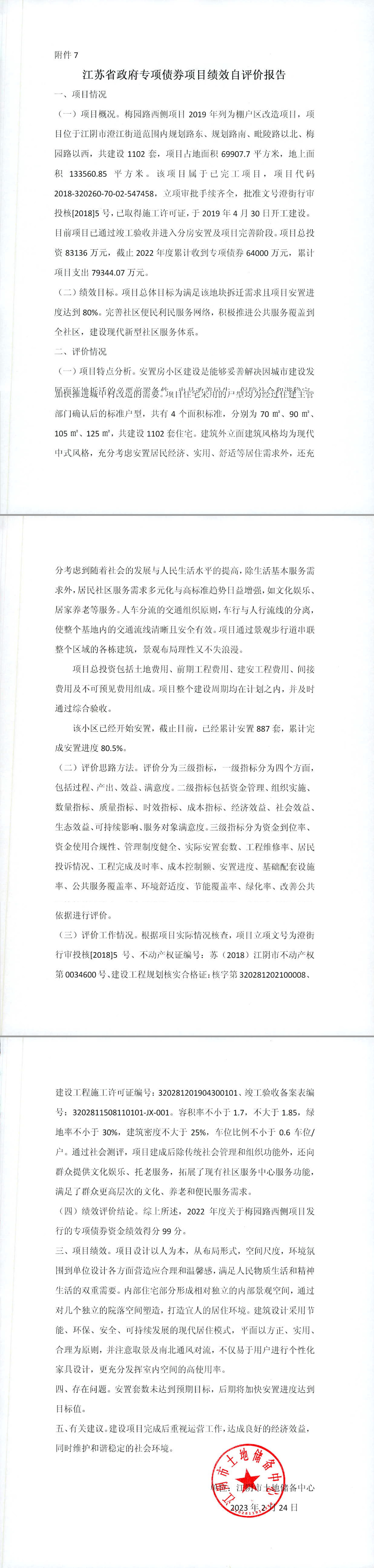 梅园路西侧项目专项债券自评报告