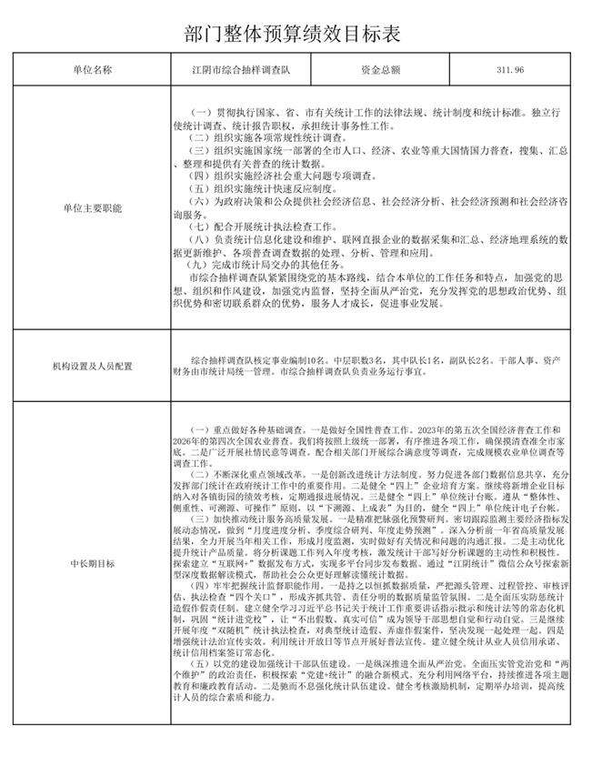 江阴市统计局2024年度部门整体预算绩效公开