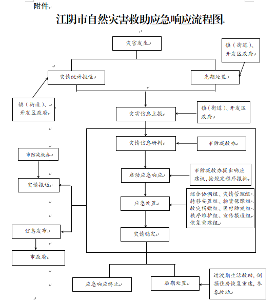 《中华人民共和国突发事件应对法》《中华人民共和国防洪法》《中华人民共和国防震减灾法》《中华人民共和国气象法》《突发事件应急预案管理办法》《自然灾害救助条例》《国家自然灾害救助应急预案》《江苏省自然灾害救助办法》《江苏省自然灾害救助应急预案》《无锡市自然灾害救助应急预案》《江阴市突发事件总体应急预案》等。