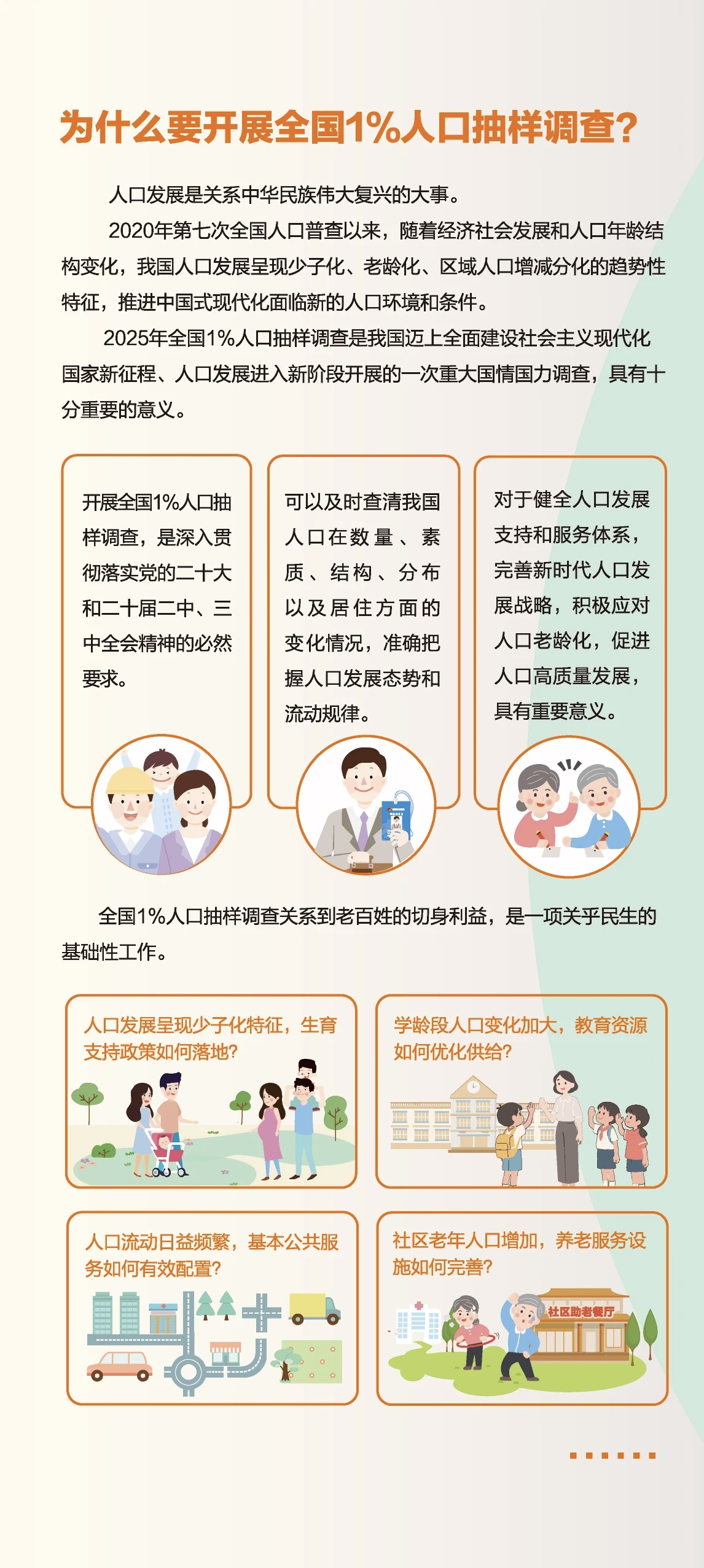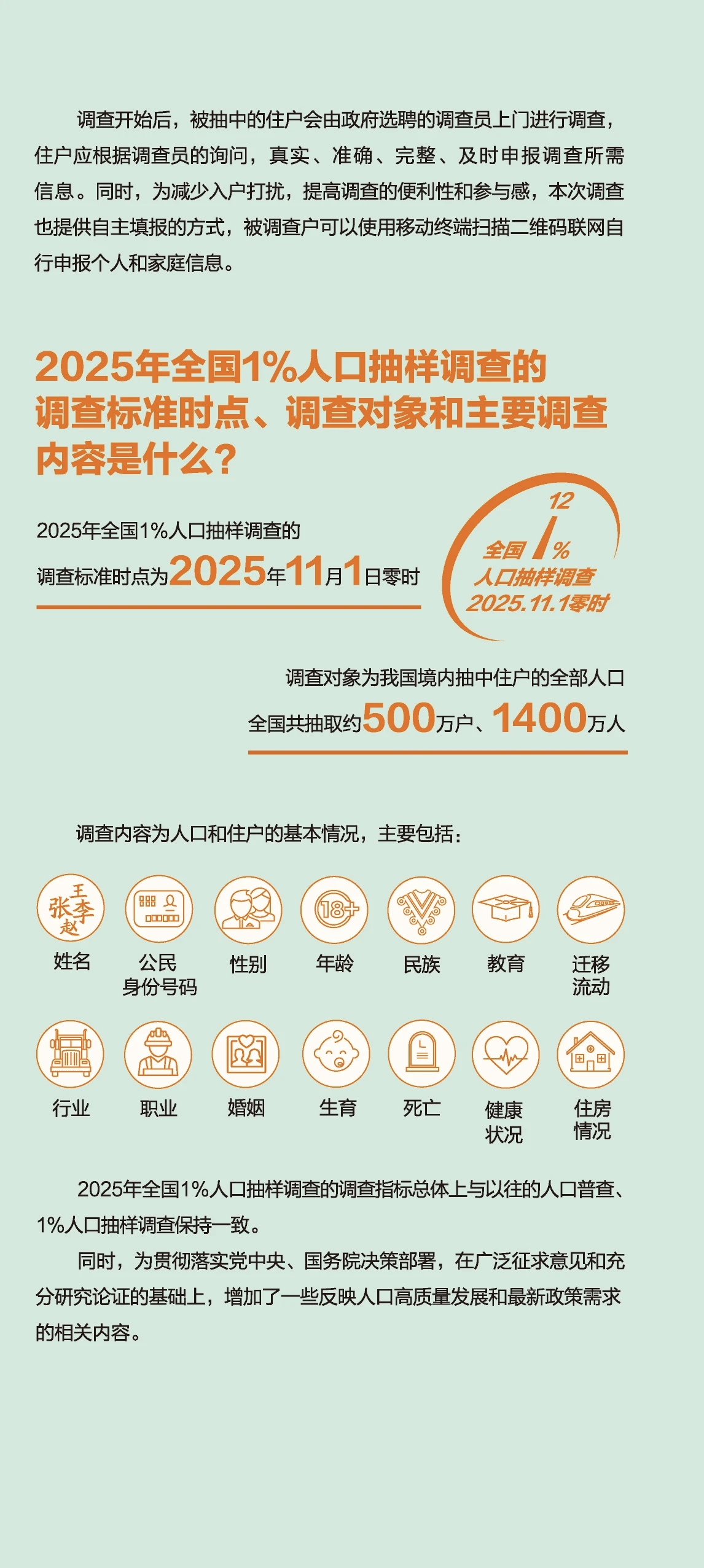 2025年全国1%人口抽样调查正在进行,9月15日至10月15日,调查员会进行住房核查,核实抽中调查的住房是否有人居住,11月1日至11月15日,调查员将进行入户登记,江阴全市有137个村(居)委会,196个调查小区被抽取,涉及万余户,请大家要注意配合。