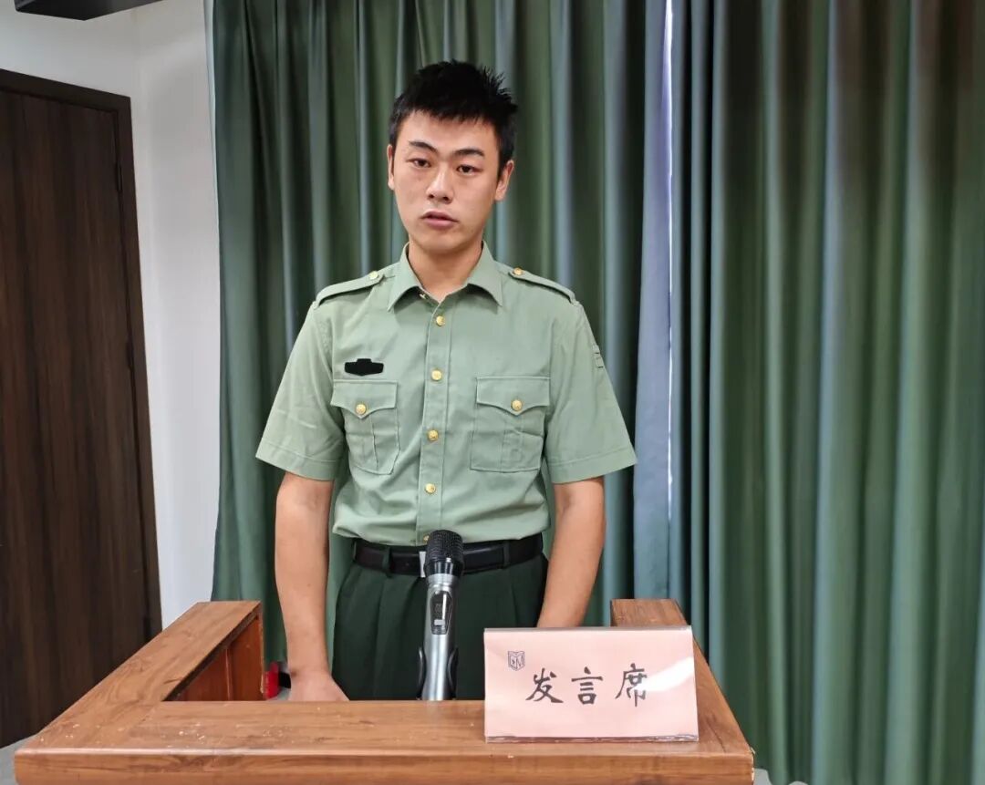 退役士兵代表舒鑫上台发言,分享了军旅生涯的难忘记忆,表示未来将把在军营中淬炼的韧劲与纪律性融入家乡建设中,以军人标准继续“冲锋”,不辜负家乡期望。