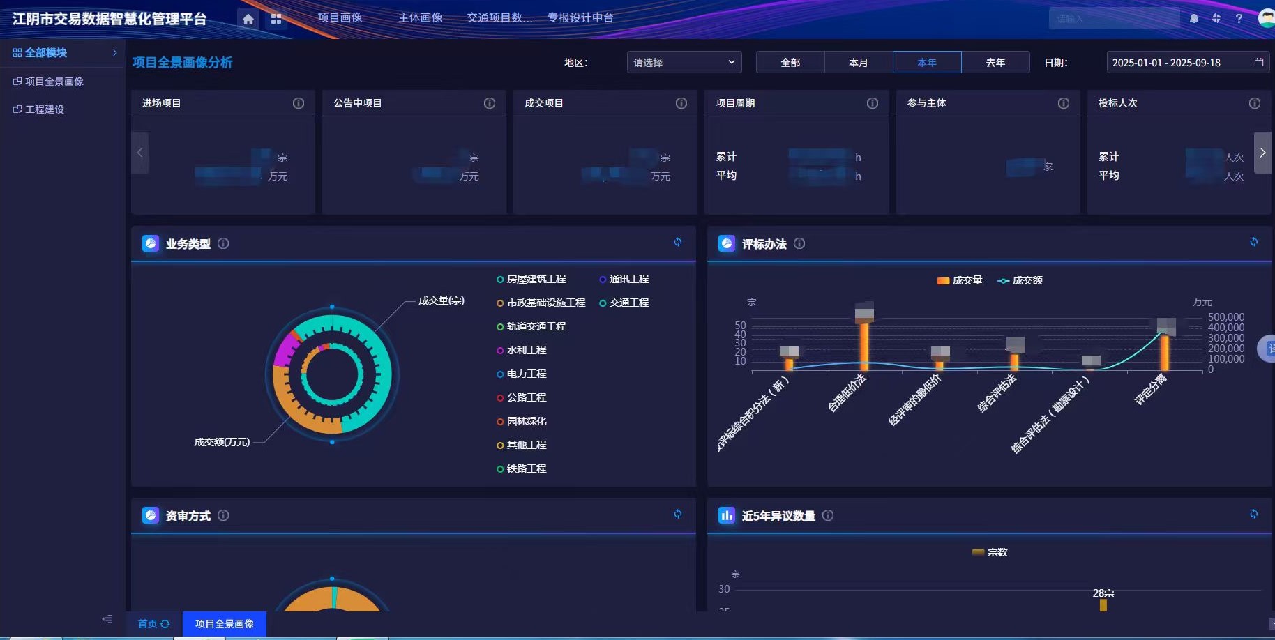 平台建设过程中,中心以“需求导向、实用为先”为原则,构建多维度、立体化数据分析体系。围绕交易规模、项目类型、投标主体、市场参与度四大核心维度,组建专项团队开展深度需求调研,重点攻关“项目画像、专题画像、主体画像”三大画像体系建设——通过梳理交易全流程数据节点,精准勾勒单个项目从立项到履约的“全生命周期画像”;针对工程建设等重点领域,构建“专题画像”实现领域数据动态监测;聚焦投标企业、代理机构等市场主体,形成“主体画像”助力市场行为精准研判,为平台开发奠定坚实需求基础。