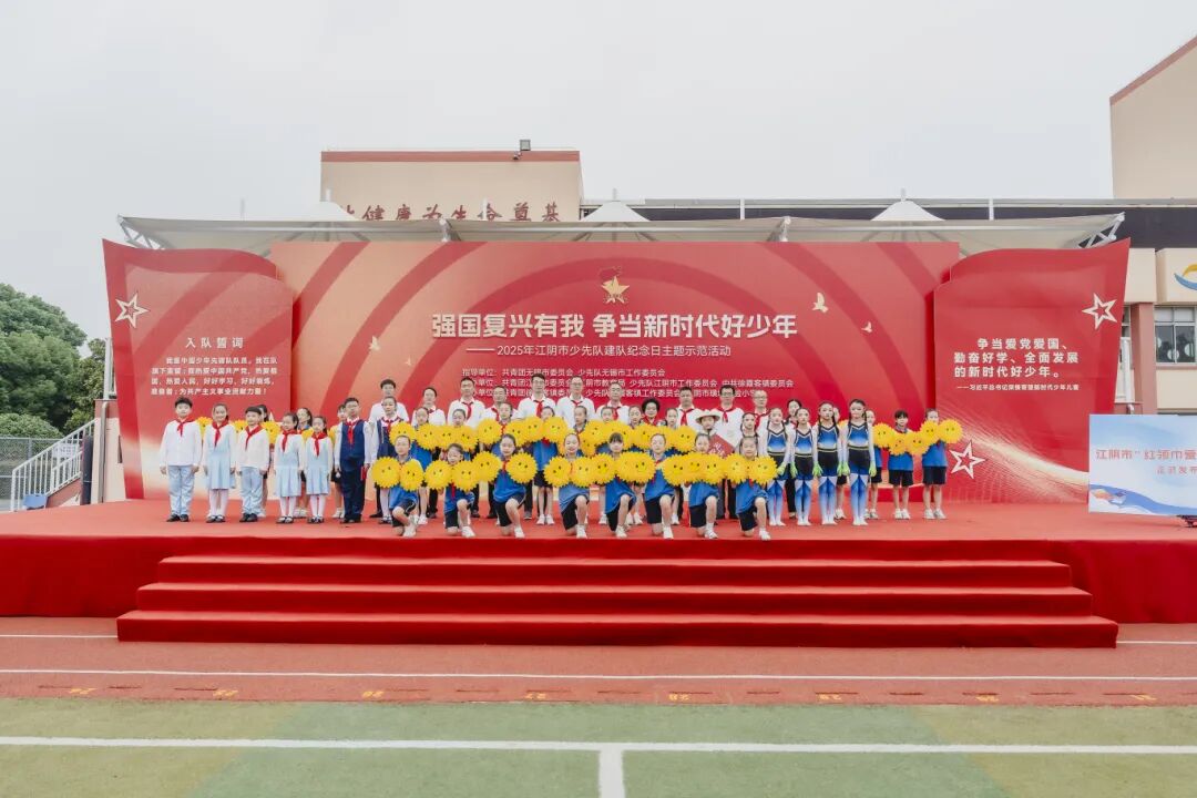 10月13日,“强国复兴有我 争当新时代好少年”——2025年江阴市少先队建队纪念日主题活动在江阴市璜塘实验小学举行。活动向全体少先队员致以节日的问候,希望队员们传承红色基因,将“强国复兴有我”的誓言化作行动,为家乡争光、为祖国添彩!在庄严的入队仪式上,215名新队员佩戴上鲜艳的红领巾,在队旗下庄严宣誓,正式加入中国少年先锋队。杰出校友陆生礼深情寄语新队员热爱阅读、热爱科学、热爱祖国。“时刻准备着!”嘹亮的呼号声,吹响了队员们新征程的号角。