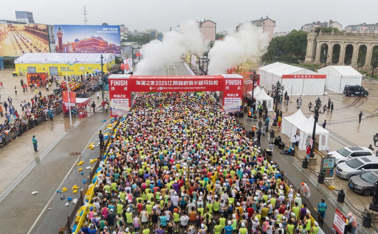 11月9日上午8时,海澜之家2025江阴新桥镇半程马拉松热力开跑,来自全国各地的近7000名跑者齐聚江阴新桥镇,在蒙蒙细雨中,共赴一场充满欢乐与激情的体育赛事,感受江阴这座现代化滨江花园城市的独特魅力。