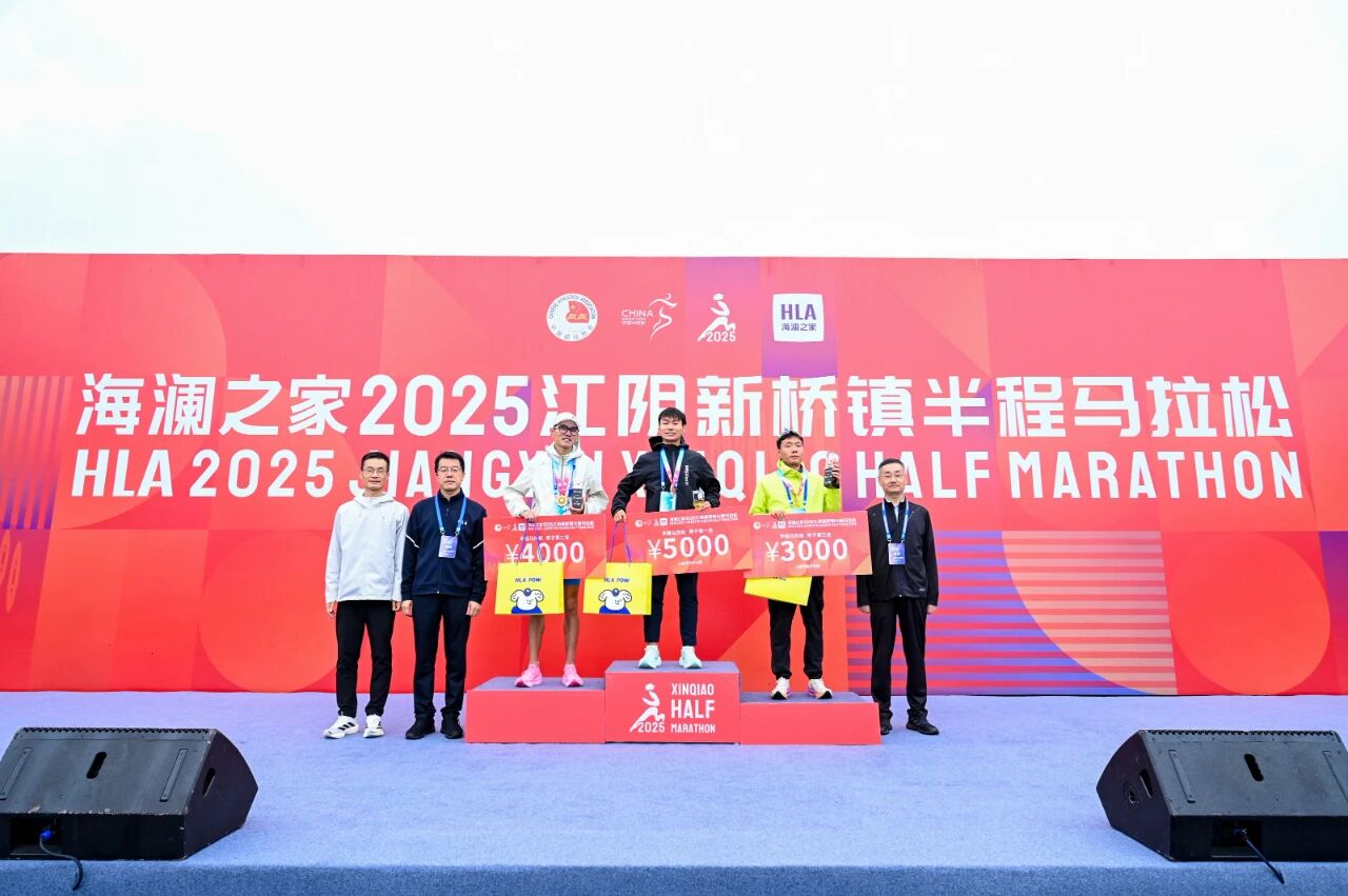 海澜之家2025江阴新桥镇半程马拉松是中国田协认证的A类赛事,由江阴市人民政府主办,江阴市文体广电和旅游局及江阴市新桥镇人民政府承办,海澜之家集团股份有限公司总冠名。活动现场,许峰为冠名商海澜集团颁发特别贡献奖奖牌。赛后,相关市领导为半程马拉松男子、女子前三名颁奖。半程马拉松男子、女子前三名分别获5000元、4000元、3000元的奖励。