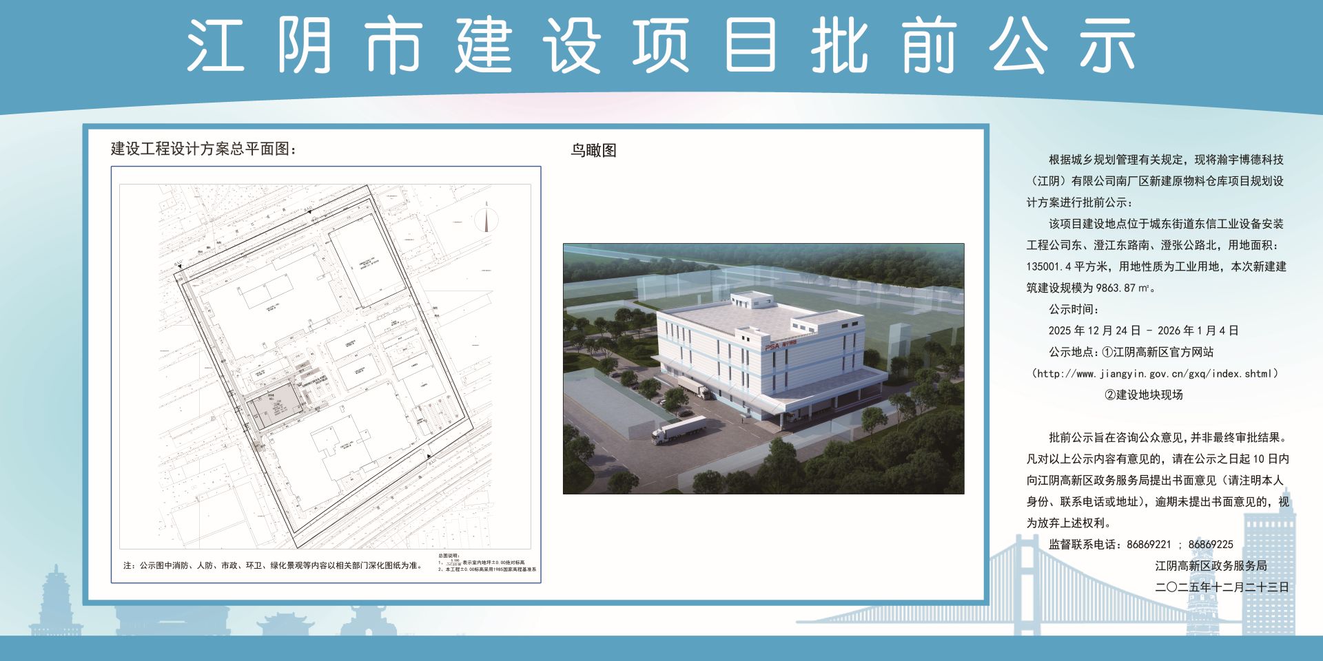 瀚宇博德科技(江阴)有限公司南厂区新建原物料仓库项目规划设计方案批前公示