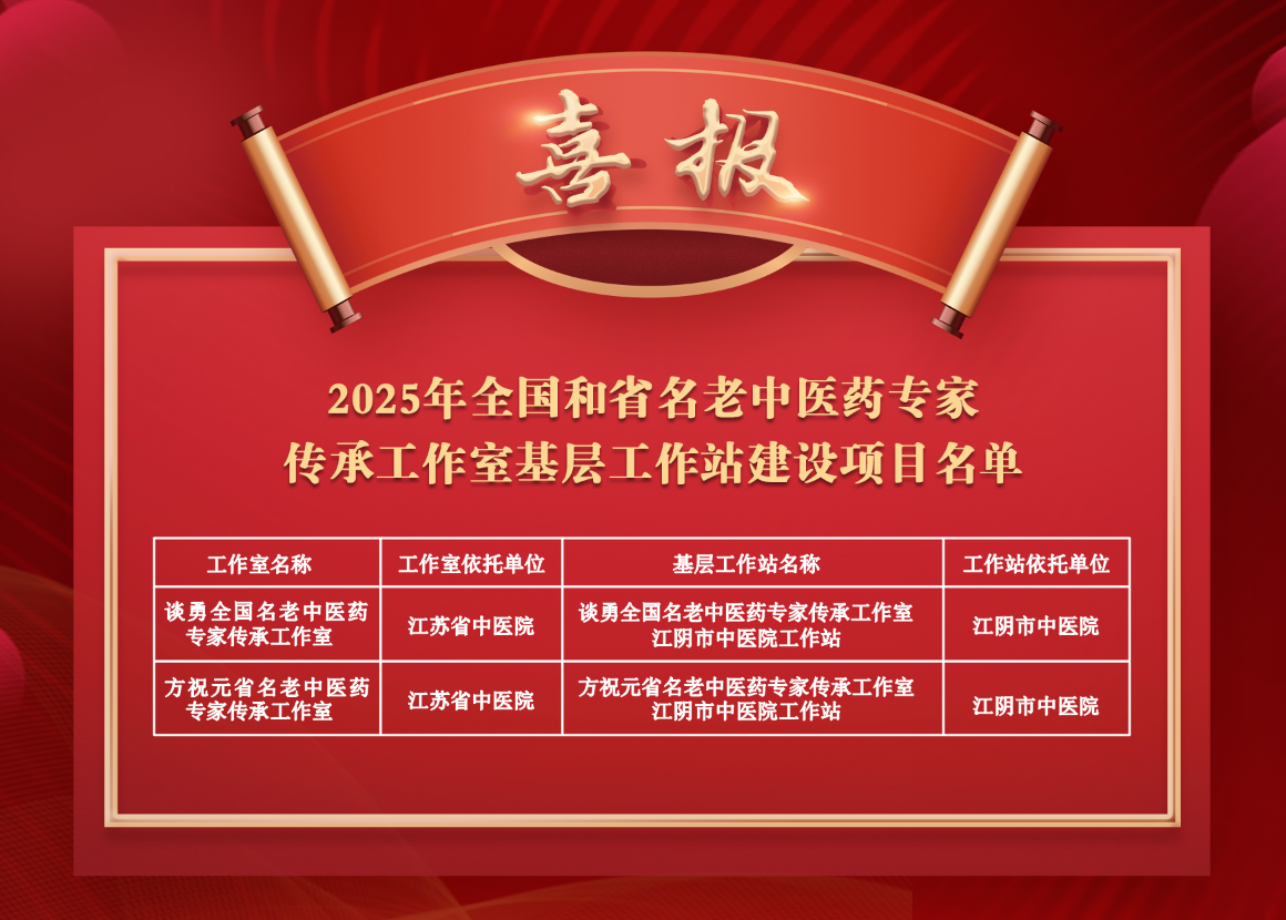 近日,省中医药管理局公布2025年全国和省名老中医药专家传承工作室基层工作站建设项目名单,我市建成2个基层工作站。
