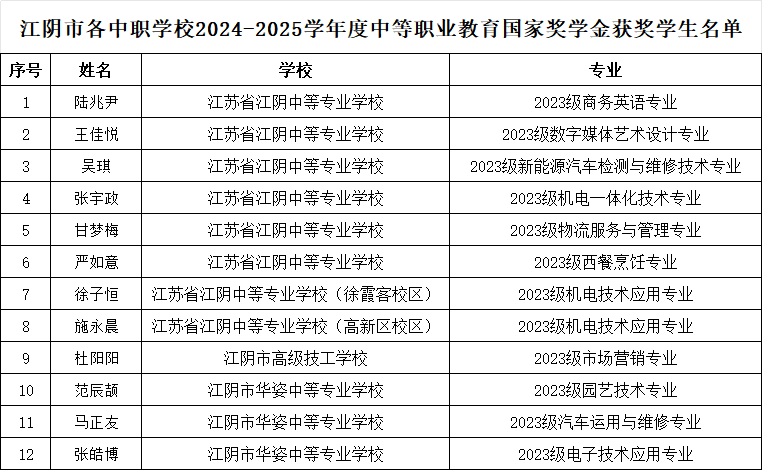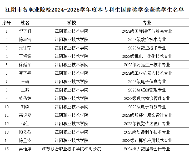 近日,教育部公布2024—2025学年度本专科生、中等职业教育国家奖学金获奖学生名单。我市各职业院校共27名同学获此殊荣。其中,15名同学获得本专科生国家奖学金;12名同学获得中等职业教育国家奖学金。