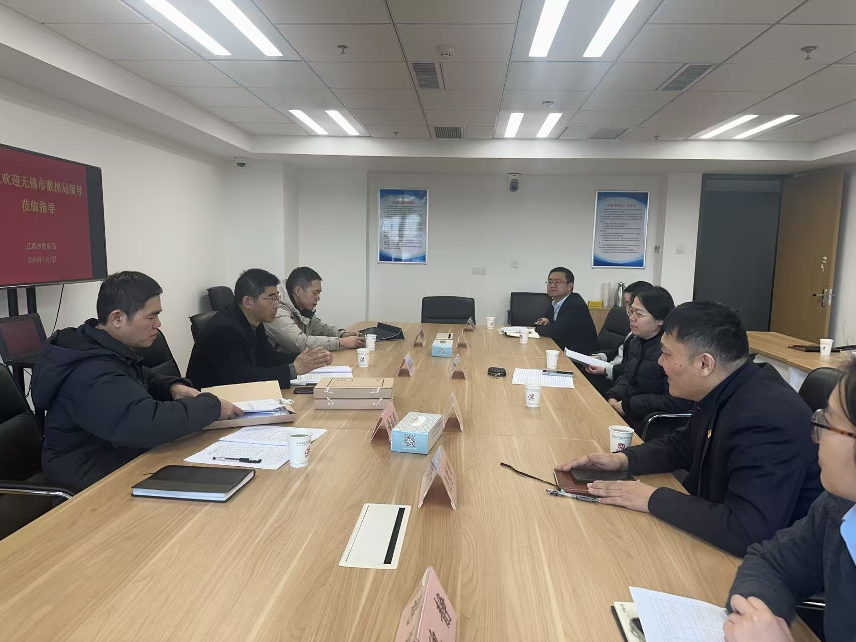 近日,由无锡市数据局四级调研员曹银和带队的“双随机、一公开”检查组莅临江阴市公共资源交易中心,对建设工程招投标工作开展深入调查。江阴市数据局副局长沈纯雅、市公共资源交易中心主任刘惠清全程陪同检查。局政策法规科、市公共资源交易中心建设工程条线相关负责人参与座谈交流。