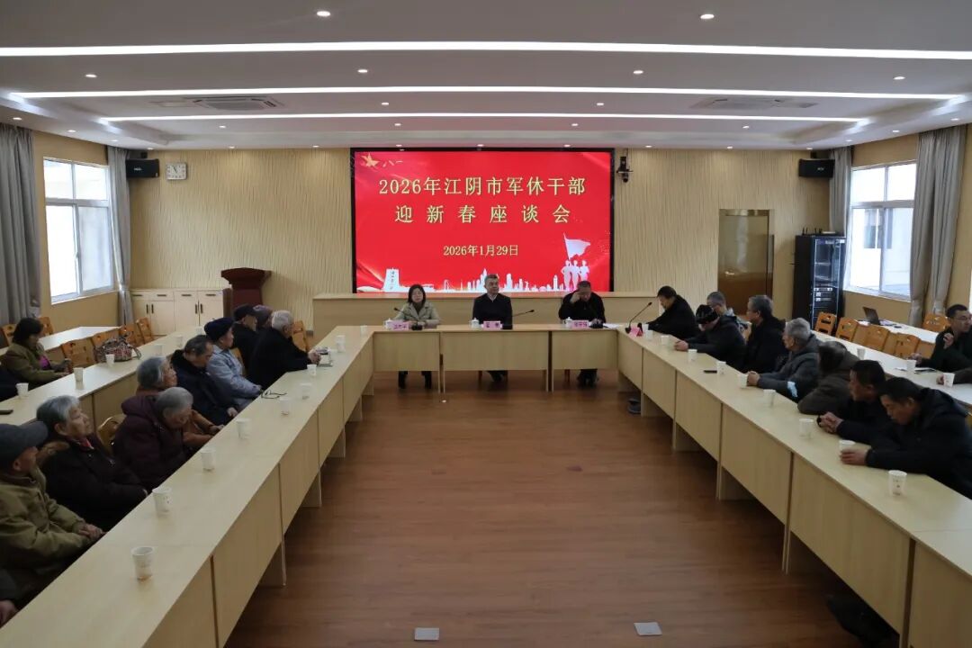 1月29日上午,江阴举行军休干部迎新春座谈会,军休干部代表齐聚一堂,喜迎新春,共话未来。会议通报了2025年全市退役军人事务工作情况和2026年重点工作。副市长翟菁参加活动。