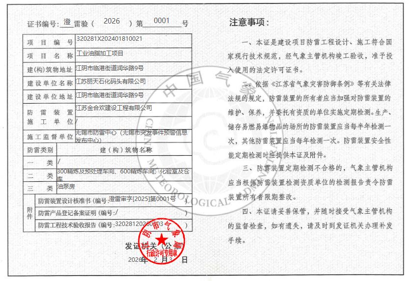 | 江苏丽天石化码头有限公司 |