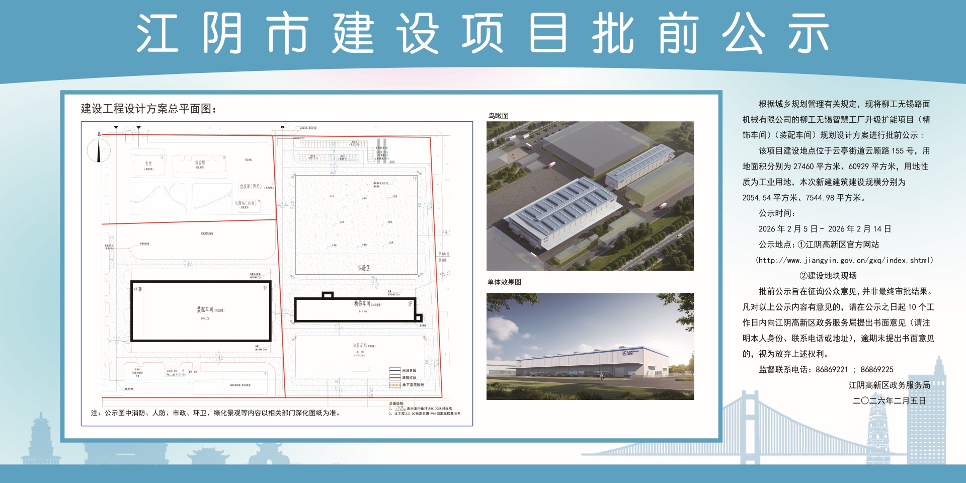 柳工无锡路面机械有限公司的柳工无锡智慧工厂升级扩能项目(精饰车间)(装配车间)方案批前公示