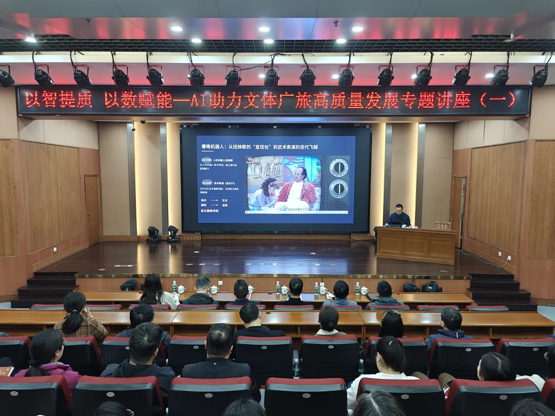 4月1日,江阴市文体广旅局举办“以智提质 以数赋能—AI助力文体广旅高质量发展”专题讲座,该讲座为今年“文体广旅拥抱AI”系列讲座第一课,主要目的是为进一步拓宽全局干部职工视野、补齐数字能力短板,精准把握“人工智能+”带来的新机遇、新挑战。
